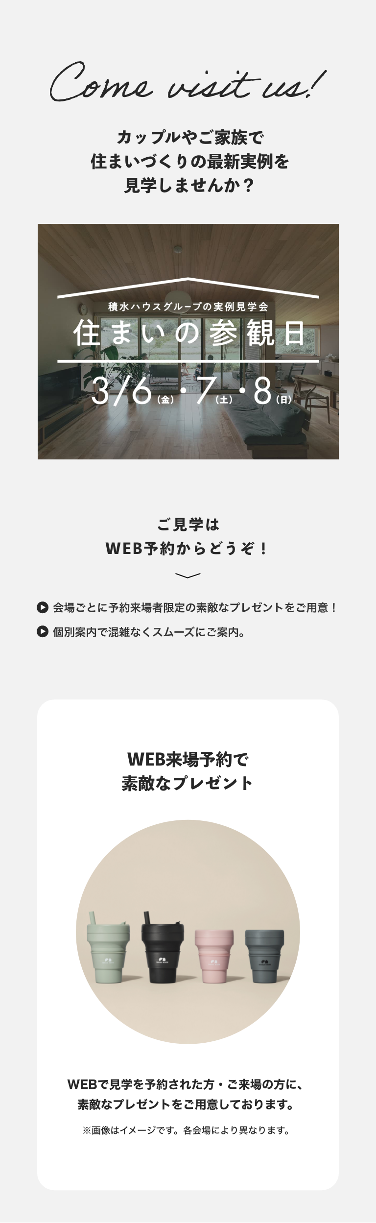 積水ハウスグループの実例見学会「住まいの参観日」3月6日(金)7日(土)8日(日)に開催のアイキャッチ