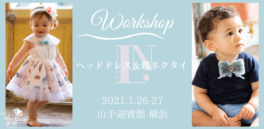 大人気のキッズドレスブランドLiliumNena( リリアムネナ)がプロデュースする、ヘッドドレスと蝶ネクタイのワークショップ。